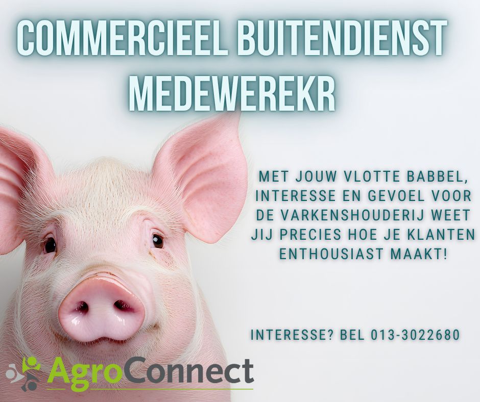 Jij bent een echte verbinder die graag in contact staat met ondernemers. Met jouw commerciële instelling zie je kansen en weet je die om te zetten in resultaten. Je hebt minimaal MBO werk- en denkniveau, bij voorkeur richting commercie of sales. Ervaring in de agrarische sector – zeker met varkenshouderij of fokkerij – is mooi meegenomen, maar jouw drive en interesse wegen zwaarder. Je hebt rijbewijs B en vindt het leuk om zelfstandig op pad te gaan.